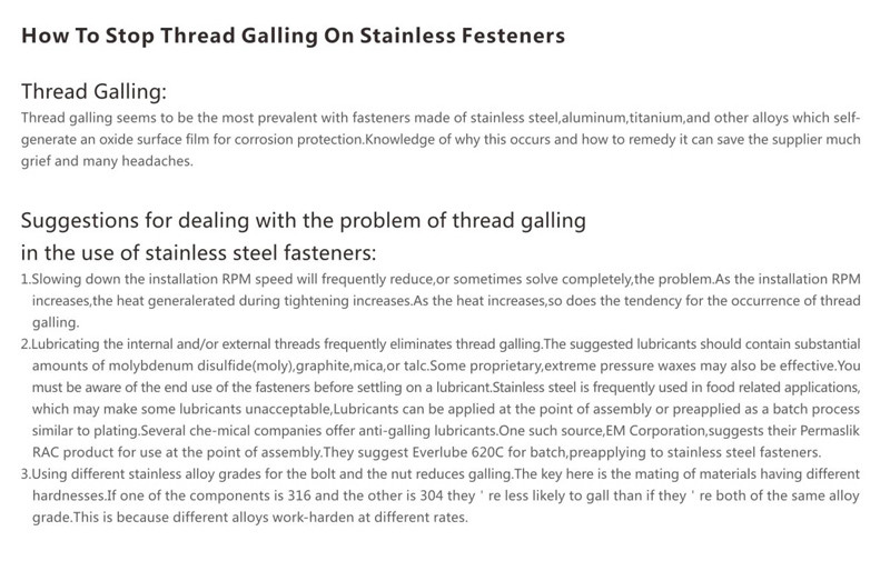 How To Stop Thread Galling On Stainless Festeners