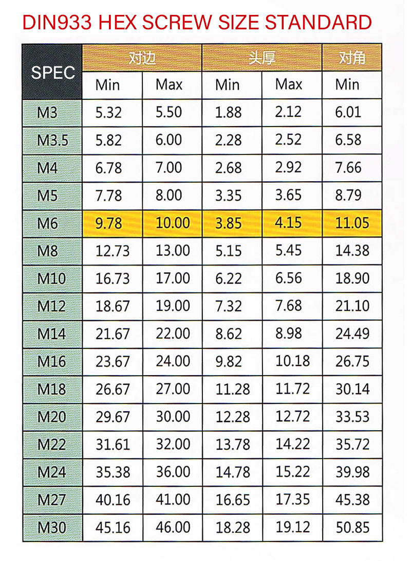 DIN912 HEXAGON SOCKET SCREW SIZE STANDARD
