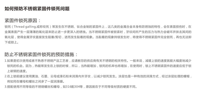 如何预防不锈钢紧固件锁死问题