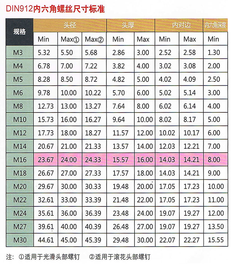 DIN912内六角螺丝尺寸标准